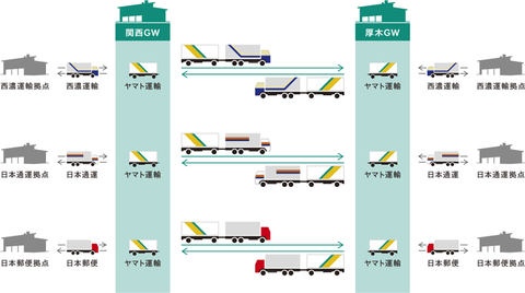 日本郵便・ヤマト・日通・西濃が、トレーラを連結して共同輸送